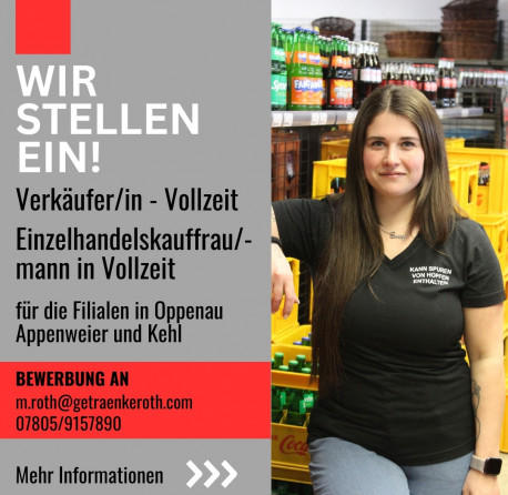 Zur Erweiterung unseres Teams suchen wir für unseren Getränke- und Raiffeisenmarkt in Oppenau, Kehl und Appenweier jeweils: